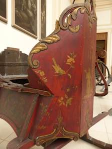 A commode by Charles Joseph Dufour (1740-1780), two secretaries, one bearing the stamp of Jean-Pierre Latz (c. 1691 –1754), a long case clock, an ensemble of black furniture, partially in papier-mâché and some Spa woods form an interesting whole for the study of japanned black furniture. Sledges, carriages, sedan chairs but also a piano, two harps and small precious objects in wood, metal or papier-mâché will also be considered. The provenance of these objects is wide. They come from our regions, but also from France, England, Austria and Italy. The works, which were donated or acquired mainly in the course of the 20th century, form indeed a heterogeneous whole, but are definitely representative of the European production.