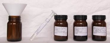 Fig. 2: Four spirit based mixtures before they are strained and combined to the final product 'To make the best White-varnish’ of Stalker and Parker (1688, pp. 10-11).